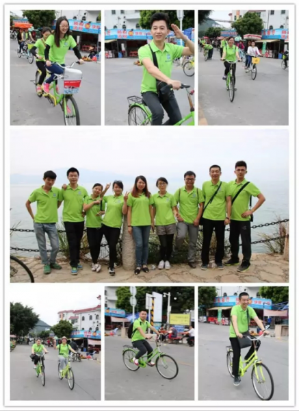 飽餐之后,一掃上午因饑腸轆轆而低落的士氣,各位同事像打了雞血一樣興致勃勃的各自挑選自行車,單人或者雙人,都打算一展自己健將般的運(yùn)動實(shí)力。選好自行車,組好隊(duì),就各自騎車飛奔(在后面趕著趕著偷拍也是累壞小編了)。?