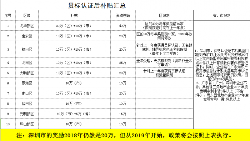 2019深圳市企業(yè)知識產(chǎn)權(quán)貫標(biāo)補(bǔ)貼文件解讀!相信很多人現(xiàn)在都還不了解2019深圳貫標(biāo)補(bǔ)貼多少錢?資助條件是什么?申報(bào)貫標(biāo)企業(yè)的意義吧! 企業(yè)通過貫標(biāo)認(rèn)證后,還可申請當(dāng)?shù)卣劇?